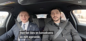 De gillar tydligen inte era åsikter, säger vakten. När Ekeroth frågar vad det är för åsikter det rör sig om svarar vakten: "Sverigedemokrater".