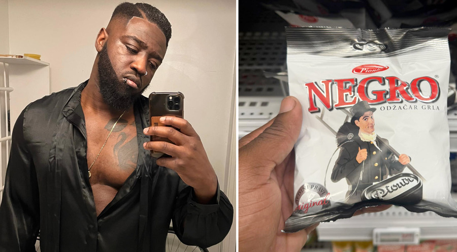 Halstabletten Negro (svart på spanska) väcker plötsligt ramaskri. "Det som fick mig att fastna var att det var en vit man på bilden vid loggan."0