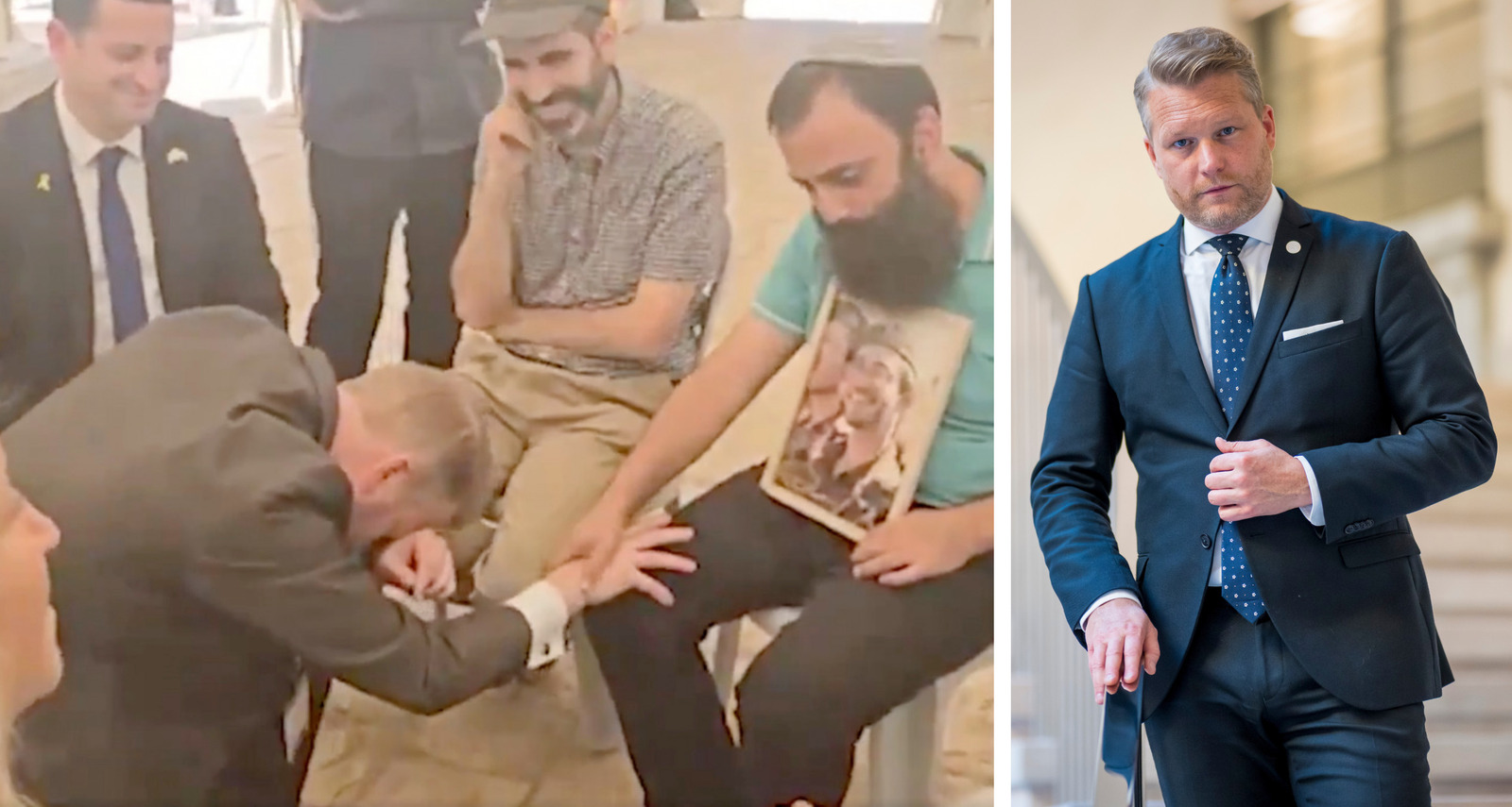 Swedish politician Alexander Christiansson bowing infront of an Israeli Zionist during his visit to Israel