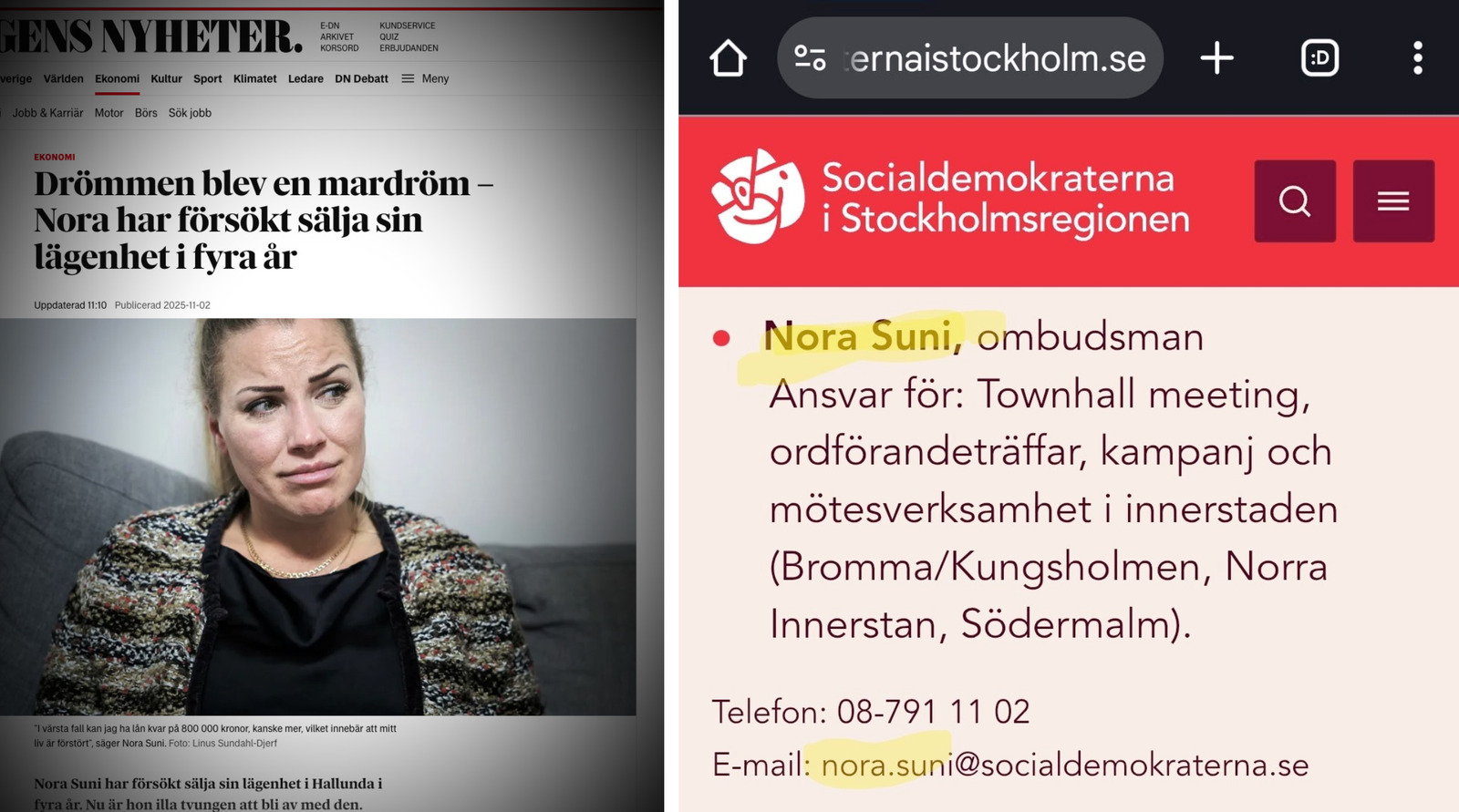 ”Stackars Nora framställs som ett offer för elaka BRF:er och låga priser. Ingenstans framgår att hon är socialdemokratisk politiker.”
