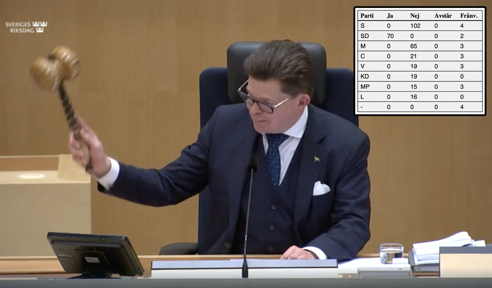 Totalt 257 ledamöter röstade nej. 70 röstade ja och 22 var frånvarande.