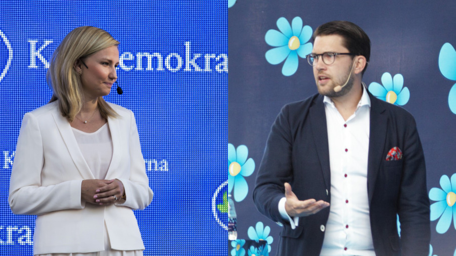 – Nej, det gör jag inte om vi talar om SD:s officiella politik i dag, men partiet har en historia sprunget ur en rasistisk rörelse, säger KD-ledaren på en direkt fråga om hon ser SD som ett "rasistiskt parti".