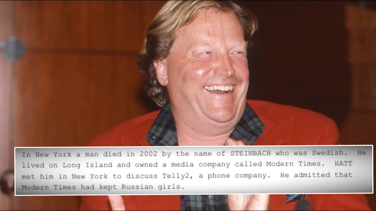 I dokumentet nämns en svensk affärsman vid namn "Steinbach", som enligt Hatt avled 2002. Han ska ha bott på Long Island och ägt ett mediebolag kallat Modern Times Group. Hatt uppger att han träffade Steinbach i New York för att diskutera telekombolaget "Tely2" och att Steinbach ska ha erkänt att Modern Times Group hade hållit ryska flickor ("kept Russian girls").