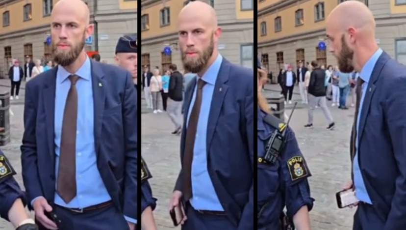 På videon ser man hur ministern, enligt uppgift tidigare samma dag, går in i demonstrationen och markerar mot demonstranterna.