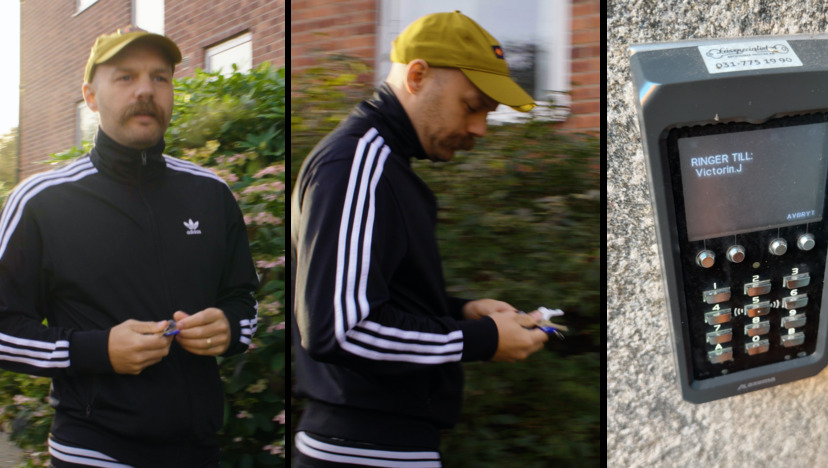 Johan Victorin konfronteras på väg in i bostaden i Varberg och får frågor om han står bakom mordet på Charlie Kirk.