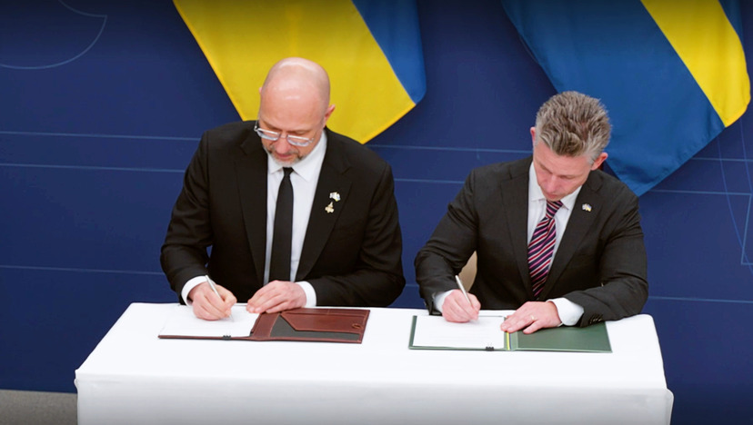 Denys Sjmyhal och Pål Jonson skriver under avsiktsförklaringen.