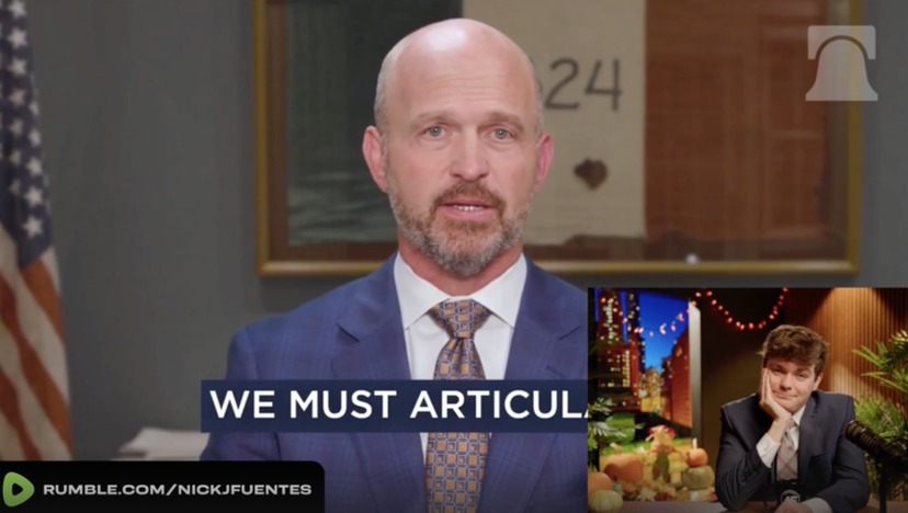 Nick Fuentes hånar klippet med Kevin Roberts ursäkt och liknar det vid en "gisslanvideo".