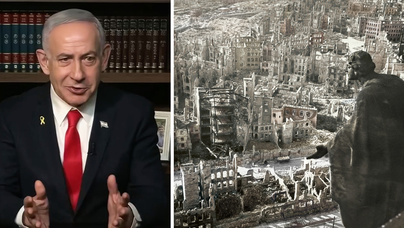 Till höger: Förödelsen efter de allierades terrorbombning av Dresden.