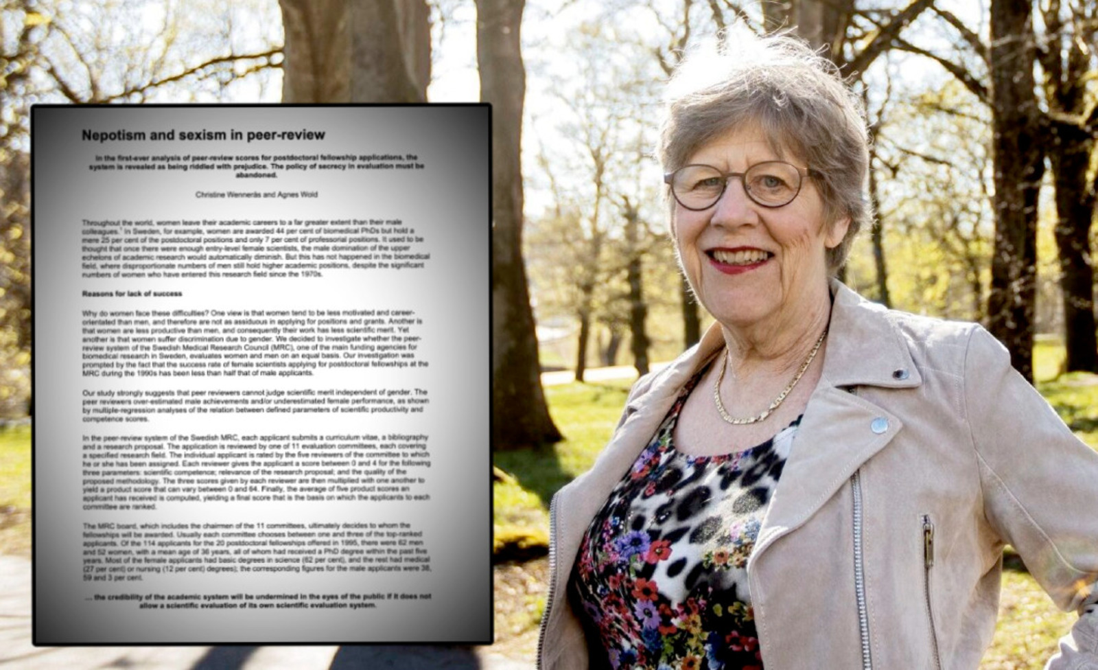 I studien, som sedan dess citerats tusentals gånger i vetenskapliga sammanhang, drog forskarna Christine Wennerås och Agnes Wold slutsatsen att kvinnor behövde vara 2,4 gånger mer meriterade än män för att bedömas som lika kompetenta vid forskningsansökningar.