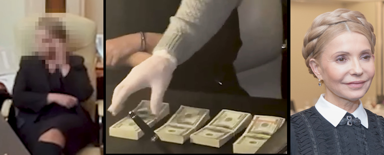 En video visar också hur utredare plockar fram stora sedelbuntar inne på Tymosjenkos kontor medan hon sitter bredvid och ser på: