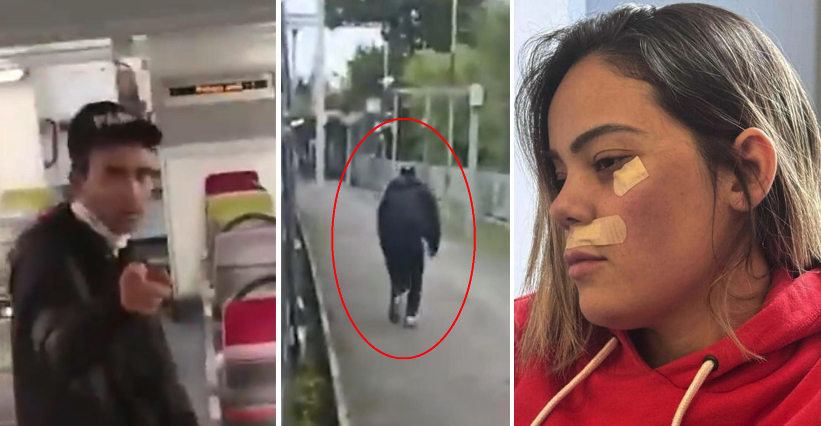 En annan kvinnlig passagerare hörde skriken, rusade fram och avbröt överfallet. Hon filmade också mannen när han lämnade tåget på nästa station och flydde till fots.