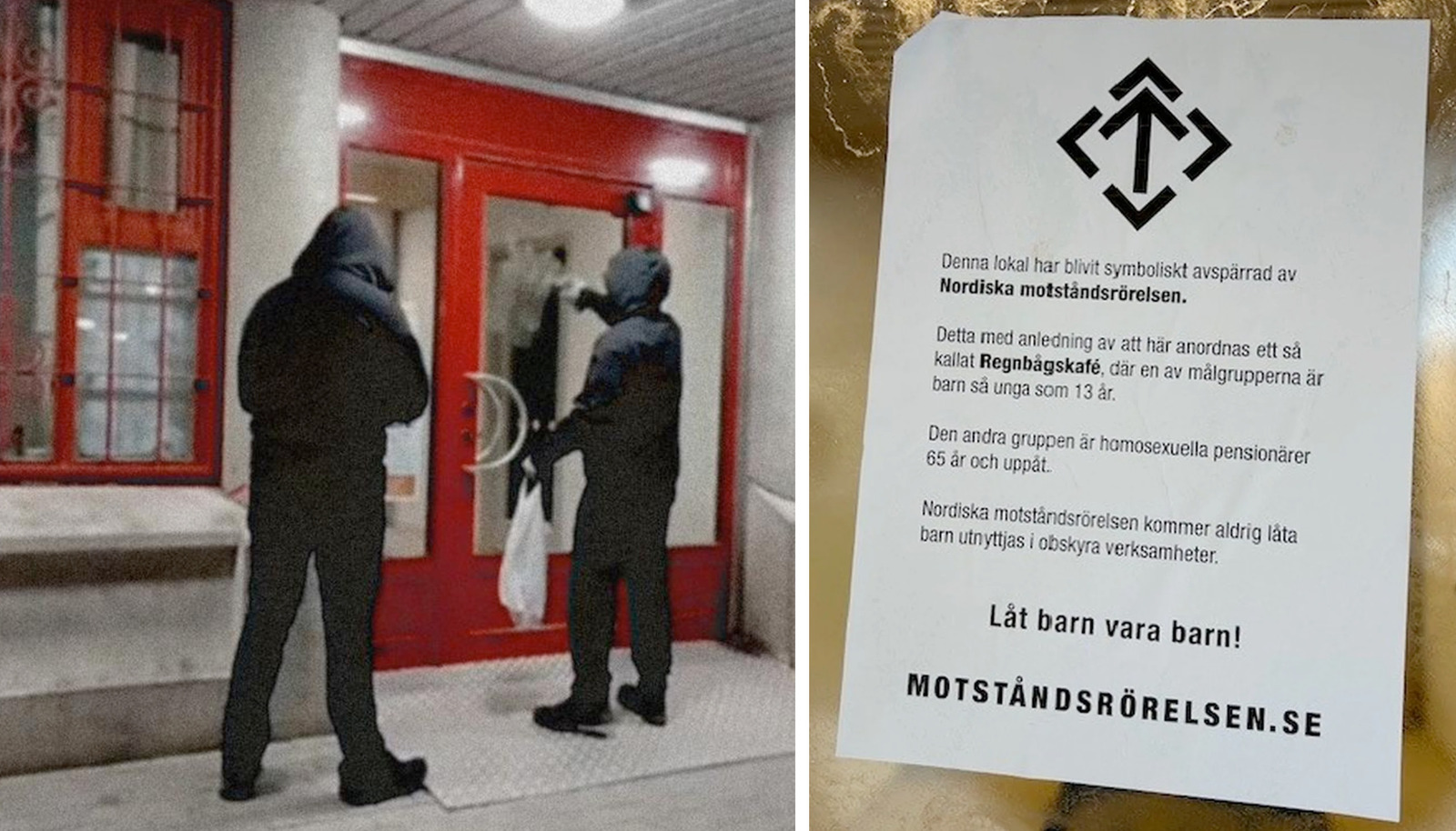 "Nordiska motståndsrörelsen kommer aldrig att låta barn utnyttjas i obskyra verksamheter. Låt barn vara barn!" löd budskapet på en affisch som kvarlämnades.
