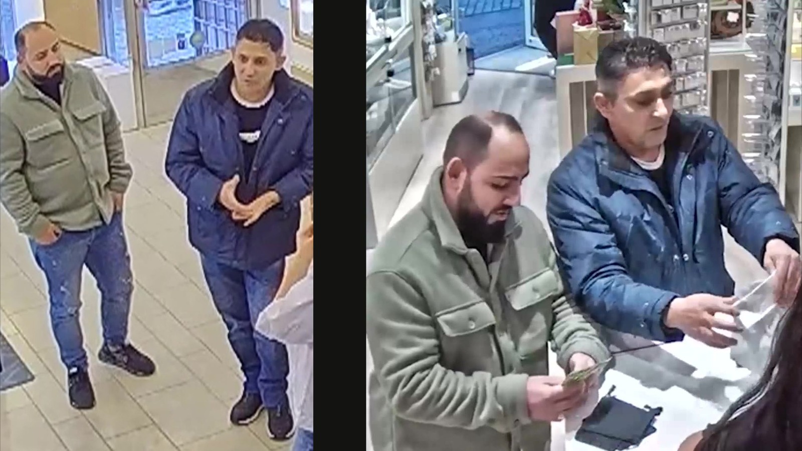 Enligt "Efterlyst" i TV3 klev männen den 22 oktober först in i en butik på Södra Tullgatan och pratade engelska med personalen. Kort därpå dök de upp på Guldfynd på Södergatan.