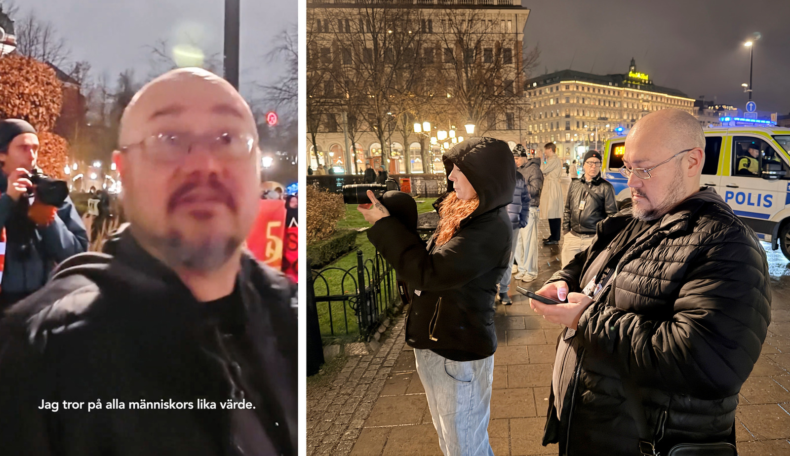 Journalisten Christian Peterson har lagt upp en video som visar hur han stötte på Ricard Nilsson i samband med söndagens manifestation i Stockholm.