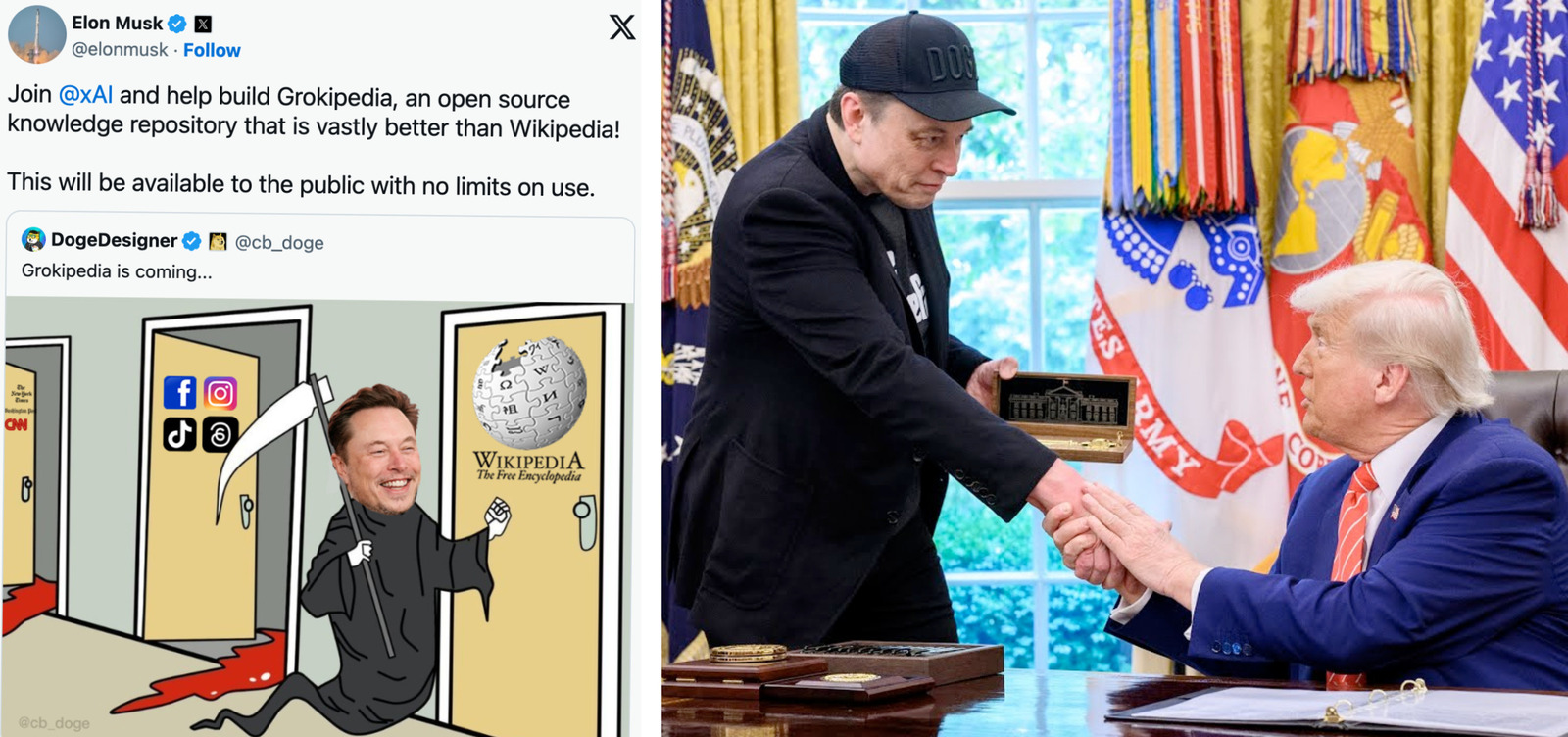Wikipedia har länge anklagats av konservativa kommentatorer för att ha övergett löftet om neutralitet i kontroversiella frågor. Musk har tidigare hånat plattformen som ”Wokipedia” och erbjudit sig att betala 1 miljard dollar om den byter namn till ”Dickipedia” i ett år. Han medger också att Grok tränats på Wikipediadata, men säger att utvecklarna ”bör ha åtgärdat detta före årets slut”.