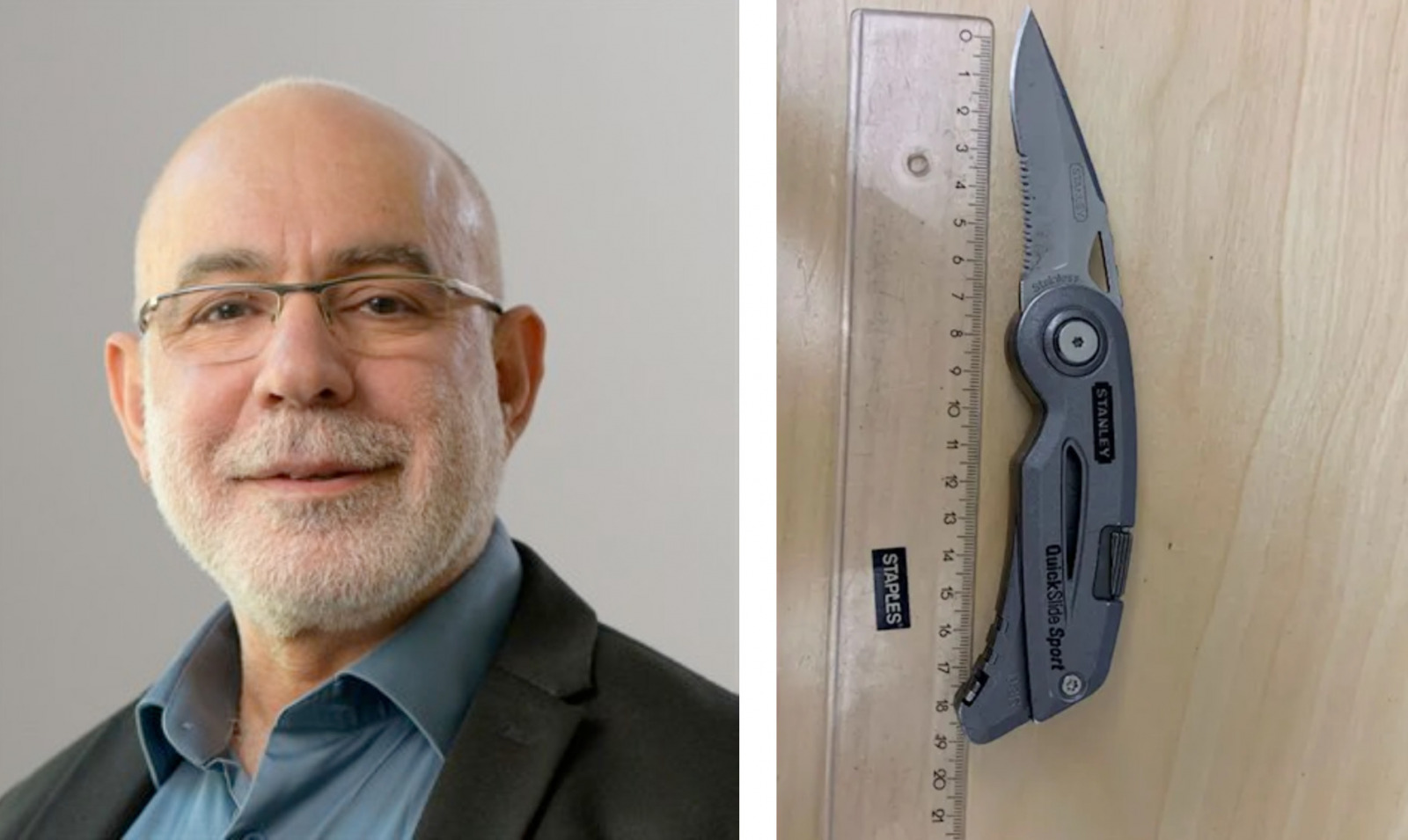 Men i säkerhetskontrollen på tingsrätten upptäcktes genom röntgen att han hade en kniv med sig i sin ryggsäck. Han stoppades därför av vakterna.