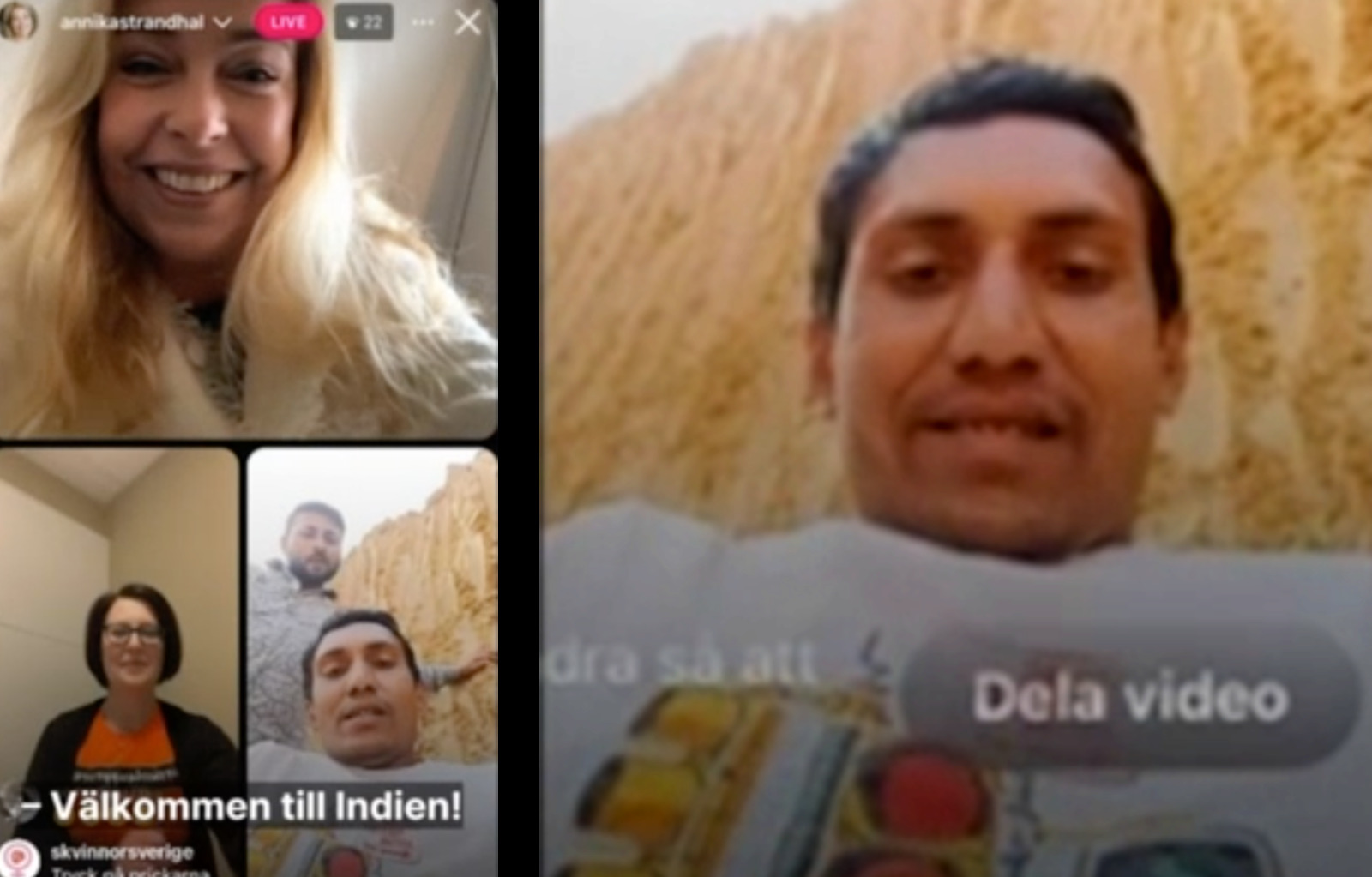 Här dyker en indisk man upp i Annika Strandhälls livesändning hon säger ''hur tar man bort den där''