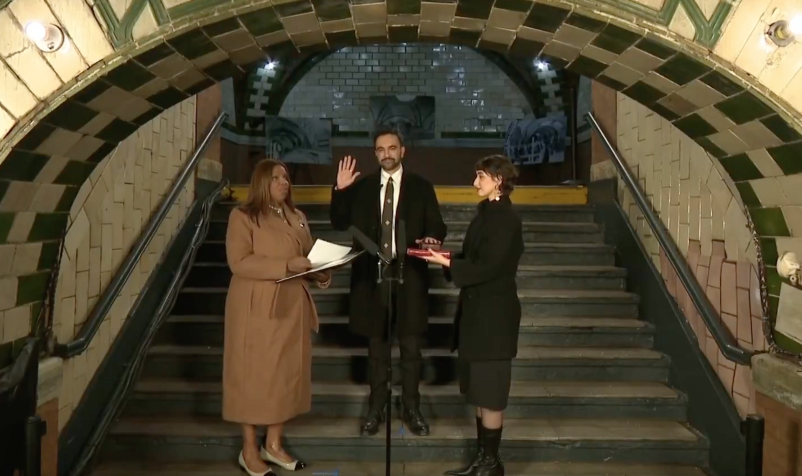 Zohran Mamdani becomes the mayor of New York City after taking the oath of office at an historic, decommissioned subway station in Manhattan. Mamdani was sworn in as the first Muslim leader of America’s biggest city, placing his hand on a Quran as he took his oath. pic.twitter.com/D6qyebCa6L