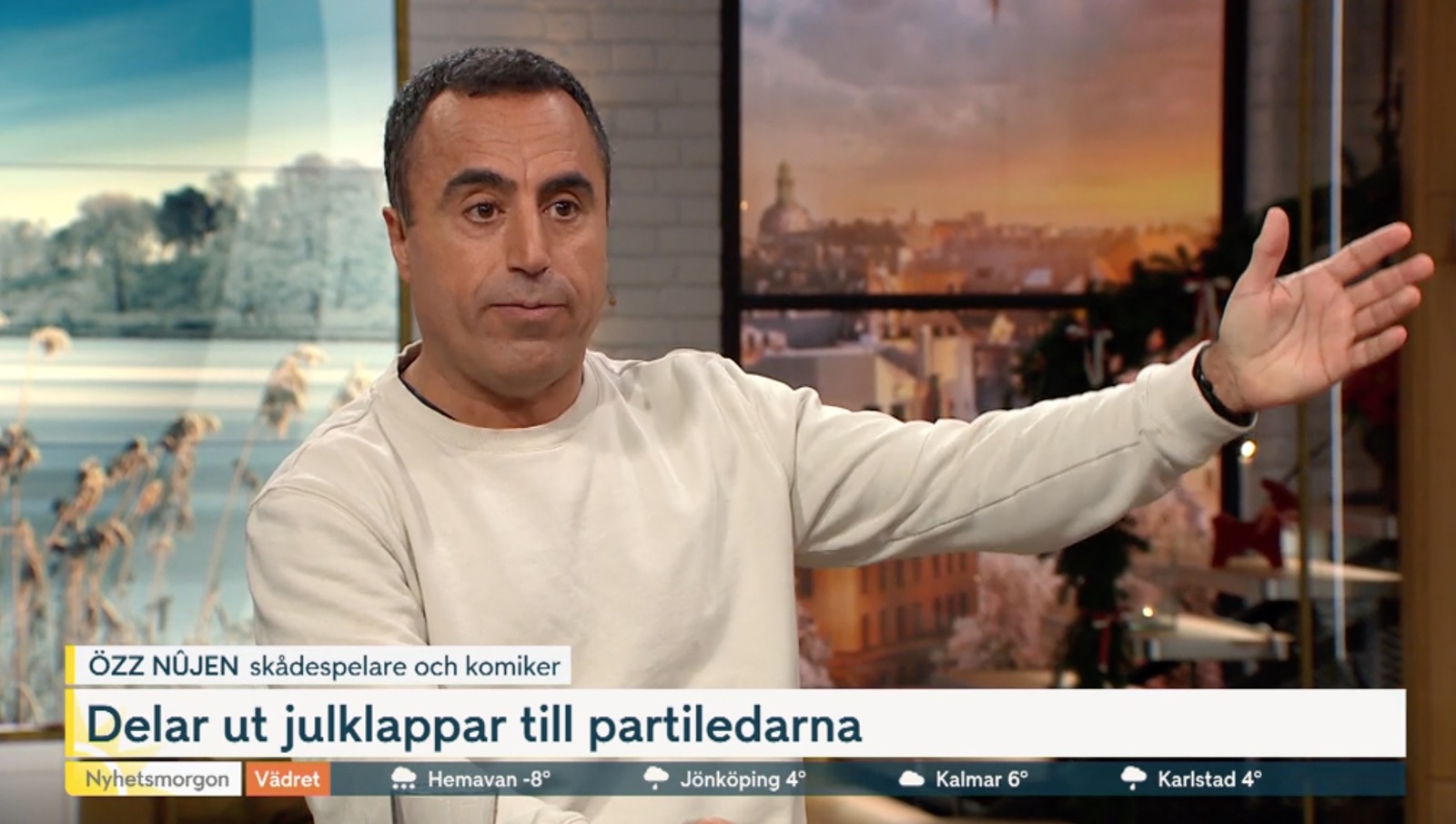 När det gäller Tidöregeringen förklarade Özz Nujen att det i själva verket är Jimmie Åkesson som bestämmer. Han beskrev Ulf Kristersson som en "strykrädd liten hund".