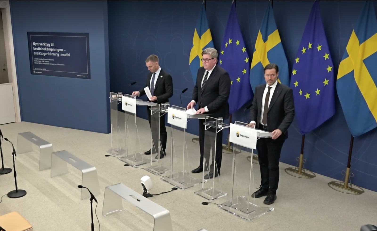 – Vi ska presentera ett nytt kraftfullt verktyg. Bakgrunden är att regeringen i går fattade beslut om en lagrådsremiss om att kunna använda AI-ansiktsigenkänning i realtid, sade han.