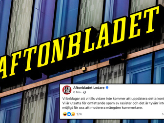 Tidningens dramatiska besked. "Vi är utsatta för omfattande spam av rasister."0