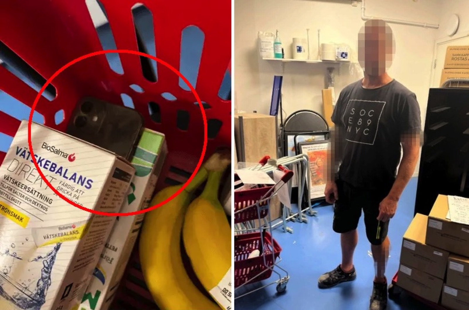 Varorna i korgen täckte mobilen så att bara kameralinserna syntes uppåt, enligt polismannen.