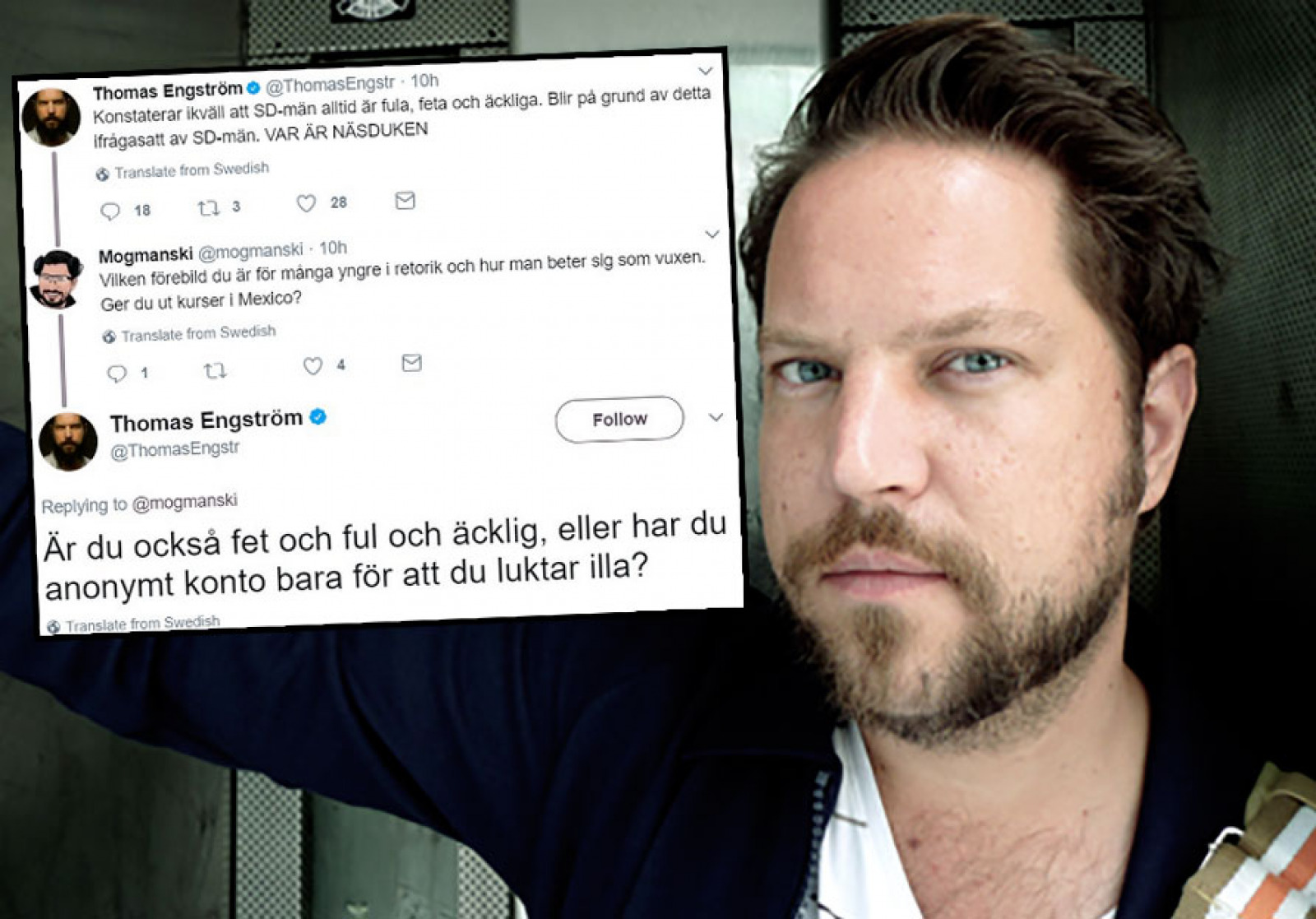 När andra personer kritiserade Thomas Engström för näthatet överöste han dem med glåpord som "fett litet troll", "äckel", "fula fetto" och "SD-apa".