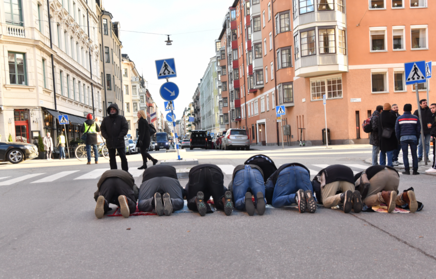 Offentlig fredagsbön vid Frankrikes ambassad. Gruppen krävde bland annat totalförbud mot "hån" mot profeten.0