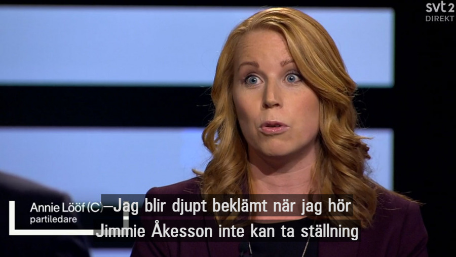 Centerledaren Annie Lööf rasar mot den amerikanska presidenten. "Han säger att han har vunnit, och den delen är ju så antidemokratisk."0
