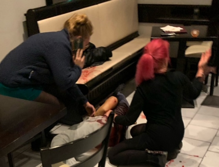 Kraftigt blödande medelålders man tog sig in på restaurang. Fick hjälp av två kvinnor.0