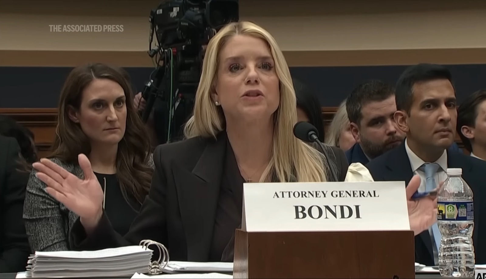 I en mycket uppmärksammad utfrågning i kongressen i februari grillades Pam Bondi om Epstein-utredningen. Hon gjorde skandal genom att skrika och ösa personangrepp över politikerna som ställde frågor.