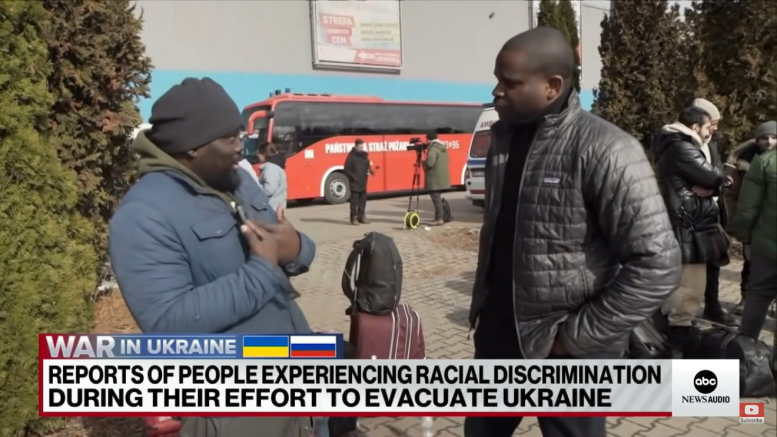 Pyra Diantouadi, en invandrare från Kongo bosatt i ukrainska Dnipro, säger till ABC News att han blev diskriminerad när han skulle fly. Detta ska ha skett när han försökte ta ett tåg ut ur Ukraina, där män har förbjudits att lämna landet.