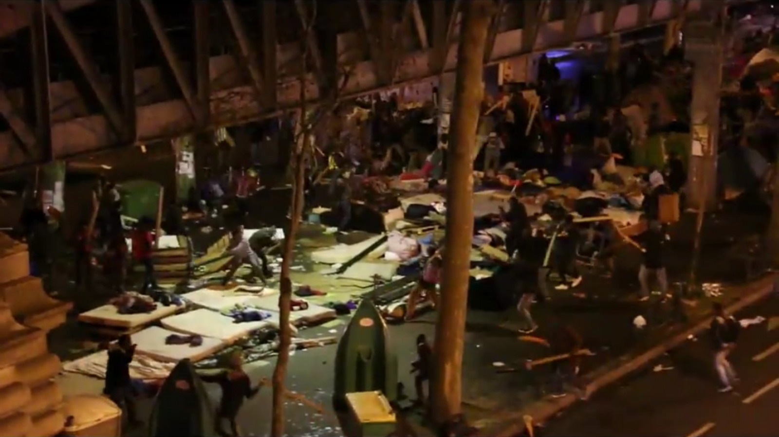 I ett videoklipp som filmats av boende i närheten syns hur de boende i lägret beväpnat sig med järnrör, plankor och andra tillhyggen och går till attack mot varandra. När kravallutrustad polis dyker upp blir de ny måltavla för våldet, poliserna använder tårgas för att försöka skingra de vilda afrikanerna.