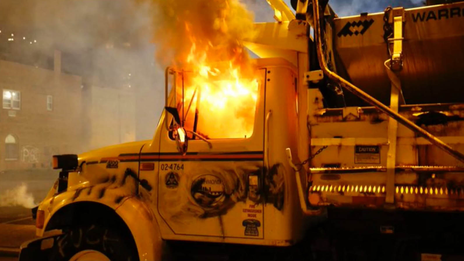 I lördagskväll skakades staden Richmond i delstaten Virginia i USA av kravaller och vandalism. Fordon stacks i brand, skyltfönster krossades och polisen utsattes för stenkastning.