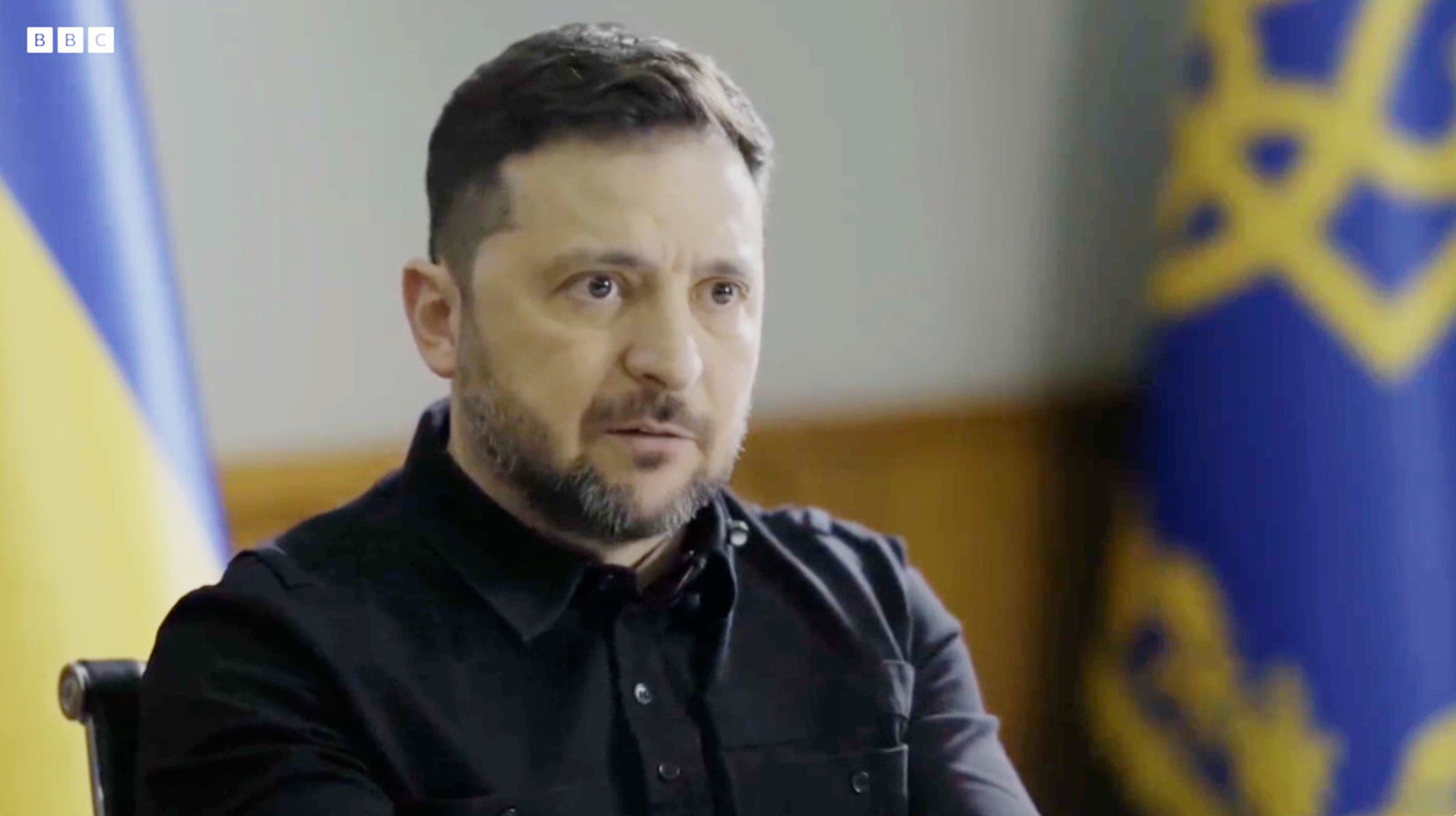 Under intervjun i regeringskvarteren i Kiev avvisar Zelenskyj alla krav på att Ukraina ska ge upp territorium i utbyte mot vapenvila.